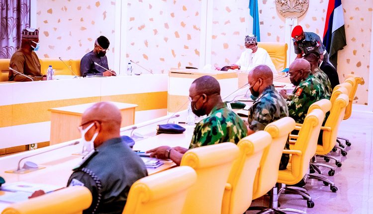 presiding, Vice President, SGF, NSA, Ministers, Service Chiefs, IGP, Intelligence Chiefs in attendance. #AsoVillaToday #SecuringNigeria,” the presidency tweeted.