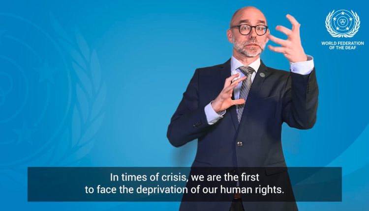 Deaf people face barriers in accessing timely health care information and necessities during emergencies.