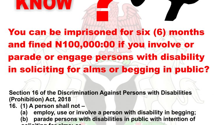 (b) parade persons with disabilities in public with intention of soliciting for alms; or