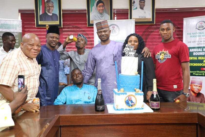 In an elated moment, and what could be described as a moment out of time, the Management and Staff of the National Commission for Persons with Disabilities led by the Director Planning and Statistics, Mr. Sorji Adewale organized a surprised birthday get together to honour the Executive Secretary, Mr. James David Lalu, recently in Abuja.