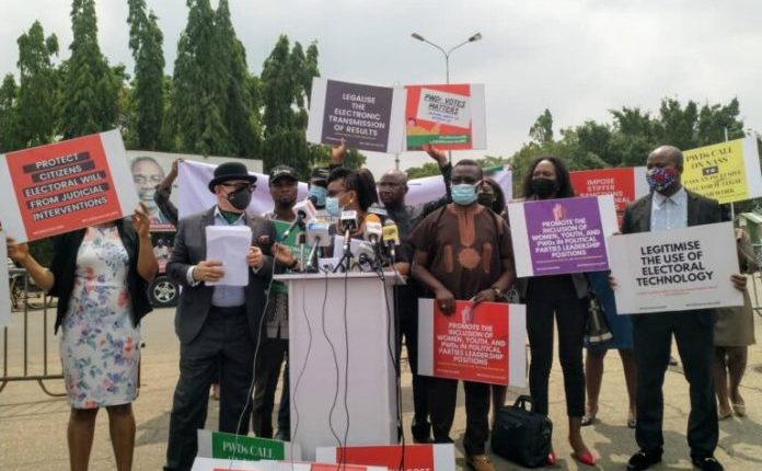A coalition under the aegis of the Alliance of Civil Society Organisations for Expression of Electoral and Democratic Space protested before the National Assembly against the exclusion of some provisions, such as electronic voting, financial autonomy for INEC, and protection of people with disabilities, in the new Electoral Act.