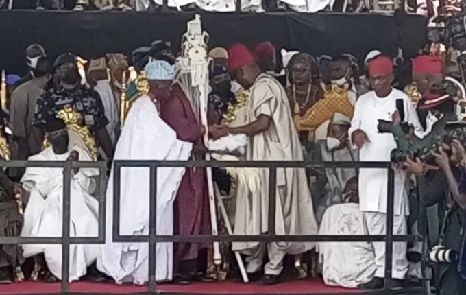 Shortly before the presentation of the staff of office, former Governor Rashidi Ladoja, who is the Osi Olubadan, led other high chiefs to pay homage to the new monarch.