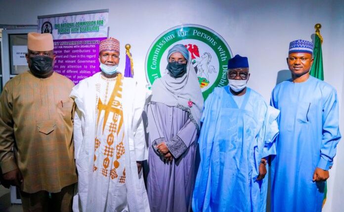 Minister of Humanitarian Affairs, Disaster Management and Social Development, Sadiya Umar Farouq, during a familiarization visit to the National Council for Persons with Disabilities (NCPWD)