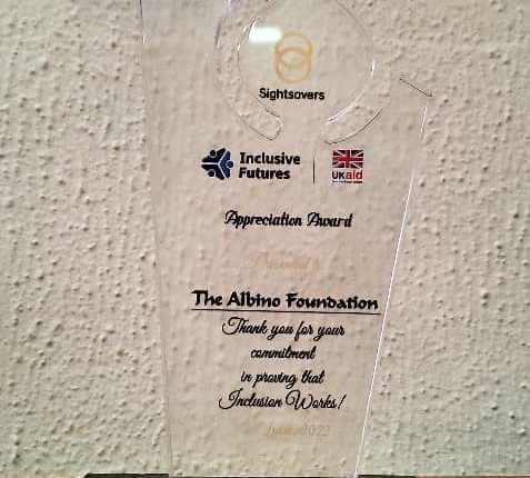 The Albino Foundation’s CEO and Founder, Jake Epelle were awarded an Appreciation Award by Sightsavers International for his commitment to Disability Inclusion.