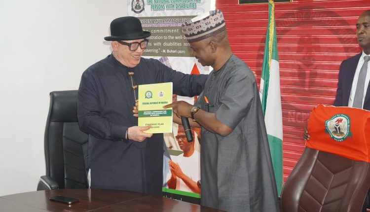 Mr. Lalu presented a copy of the 2022-2026 strategic plan document to Amb. Jake Epelle, intended to prioritize the activities of the commission and ensure that the nation tap from the potentials of persons with disabilities, culminating in inclusion of persons with disabilities in all areas of National development.